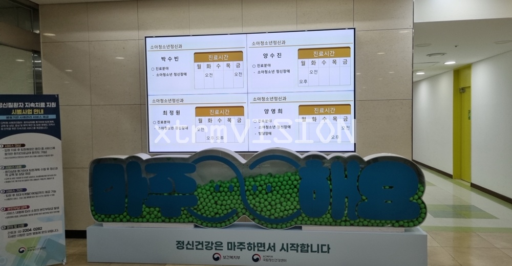 * 국립정신건강센터에 LCD 모니터 설치 되었습니다. 초슬림 베젤을 이용하여 베젤의 경계가 거의 느껴지지 않고 전체 화면 또는 분할 화면으로도 이용이 가능합니다.